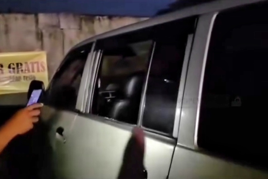 Mobil korban pencurian dengan modus pecah kaca di area parkir rumah makan GDC, Kota Depok, Rabu (04/02/26) malam. (Foto: Istimewa)