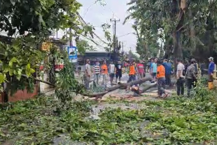 Di mana pohon tumbang sempat menutup akses lalu lintas hingga kendaraan tidak dapat melintas.