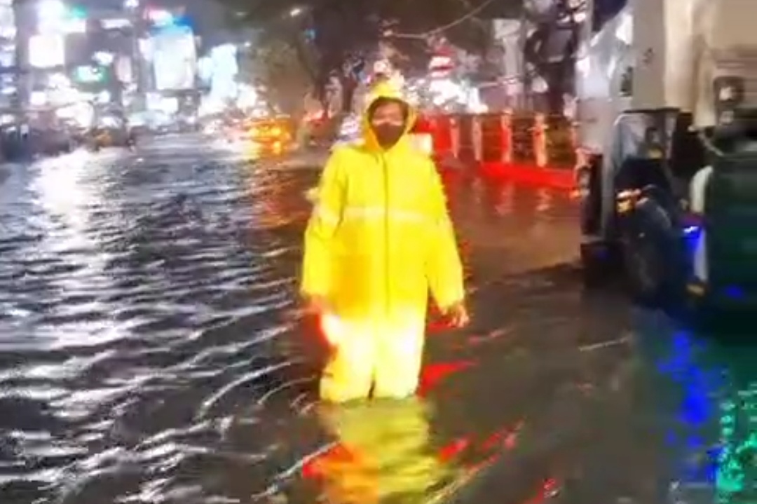 “Banjir ini karena hujan deras dari sore, sekitar jam setengah enam. Lubang drainasenya itu terlihat banyak yang kesumbat,” ujar Ali.