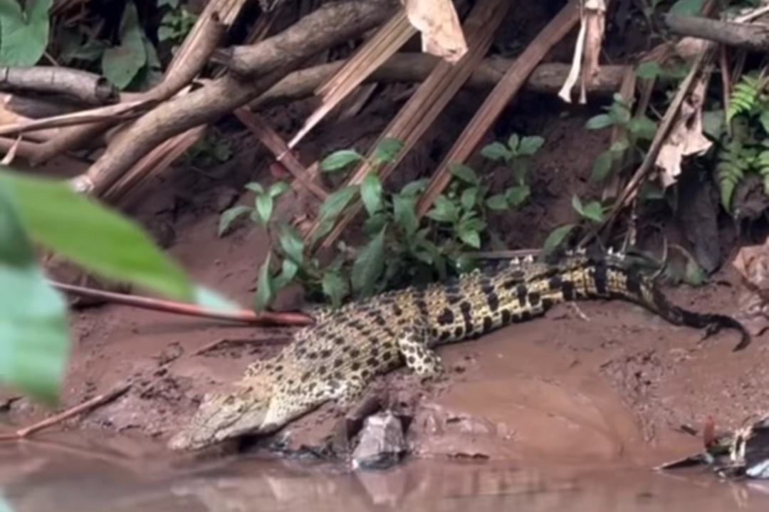 Pada awalnya, terdapat dua ekor buaya berukuran kecil yang terlihat di sekitar lokasi.