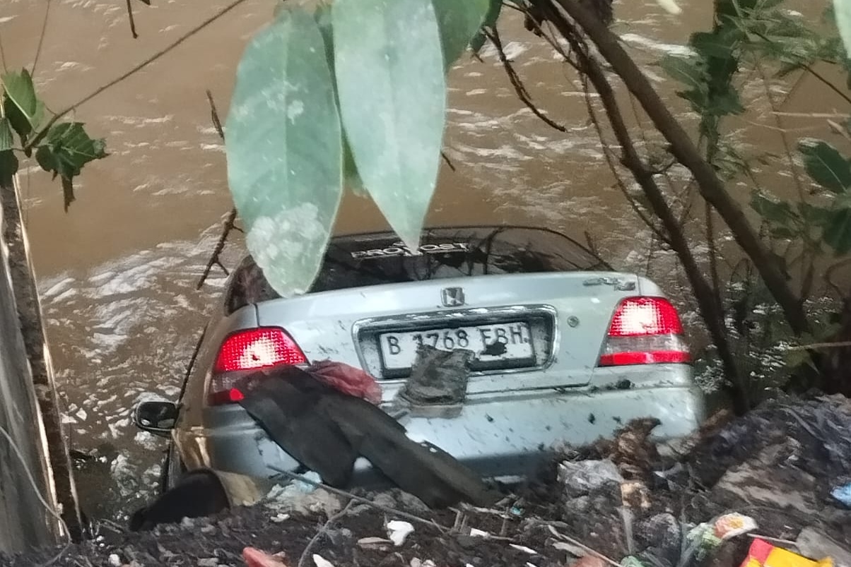 Hindari Kendaraan Lain, Sebuah Mobil Terjun ke Sungai di Depok