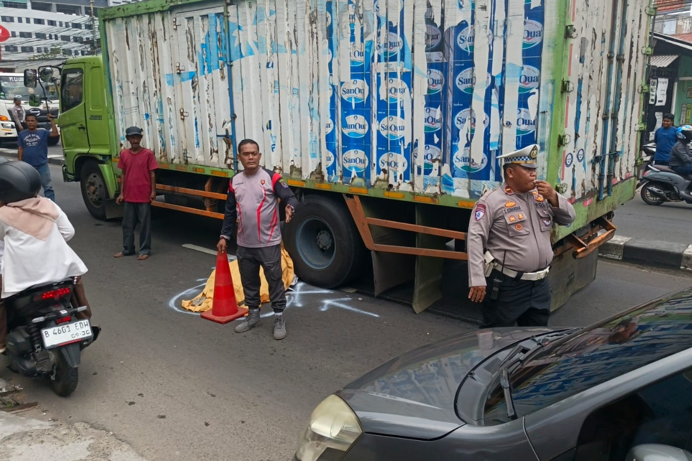 Panit Lantas Polsek Sukmajaya, Ipda Isnandar, menyebutkan bahwa korban yang mengendarai sepeda motor Yamaha NMAX dengan nomor polisi B 3515 EOI tersenggol oleh motor lain hingga terjatuh ke kolong truk kontainer.