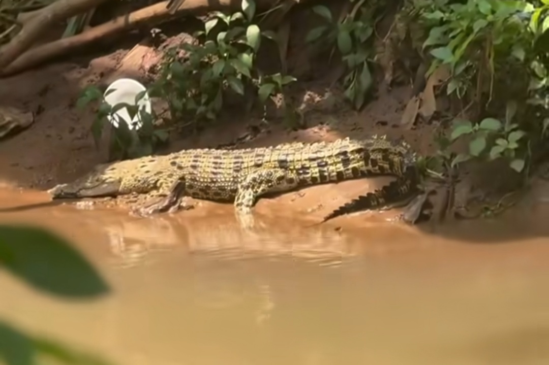 “Setelah sekian lama banjir, buayanya nggak muncul, hari ini karena ada panas, jadi dia muncul di permukaan karena ingin berjemur,” sambungnya.