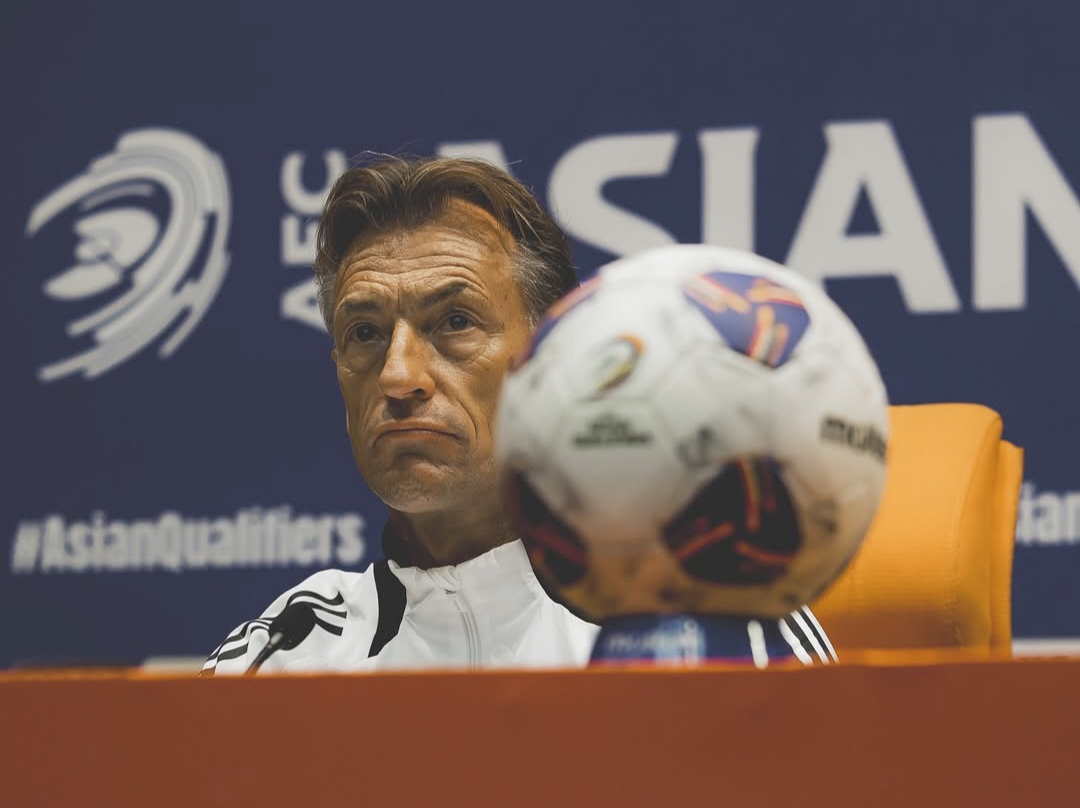 Pelatih Timnas Arab Saudi, Herve Renard saat konferensi pers Jepang Indonesia vs Arab Saudi, Jeddah (7/10/25) (foto: IG @saudint).