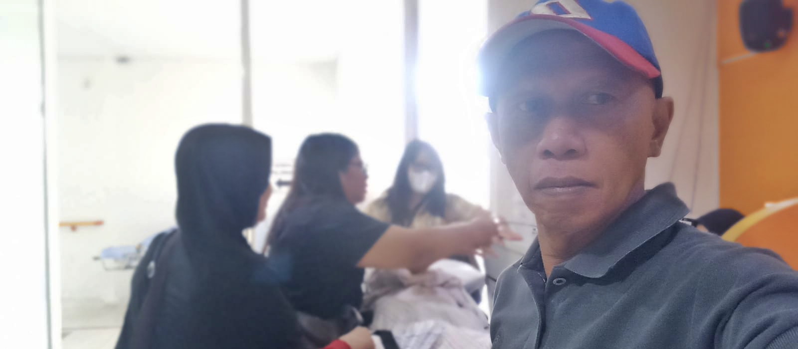 Eka Suryadi, relawan Adainfo.id sekaligus anggota Sobat Bang Hafid (SBH), mendampingi warga Depok Timur untuk menjalani pemeriksaan kontrol kesehatan di Rumah Sakit Universitas Indonesia (RSUI), Sabtu (12/09/25) (foto: adainfo.id)