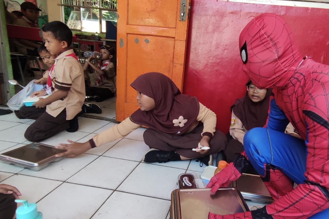 Superhero Datangi SDN Anyelir 1 Depok, Siswa Antusias Terima Makan Bergizi Gratis