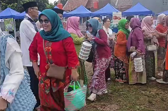 Kegiatan rantangan dalam acara Syawalan Tanah Baru, Kota Depok yang digelar di Lapangan Gaban, Sabtu (28/03/26). (Foto: adainfo.id)