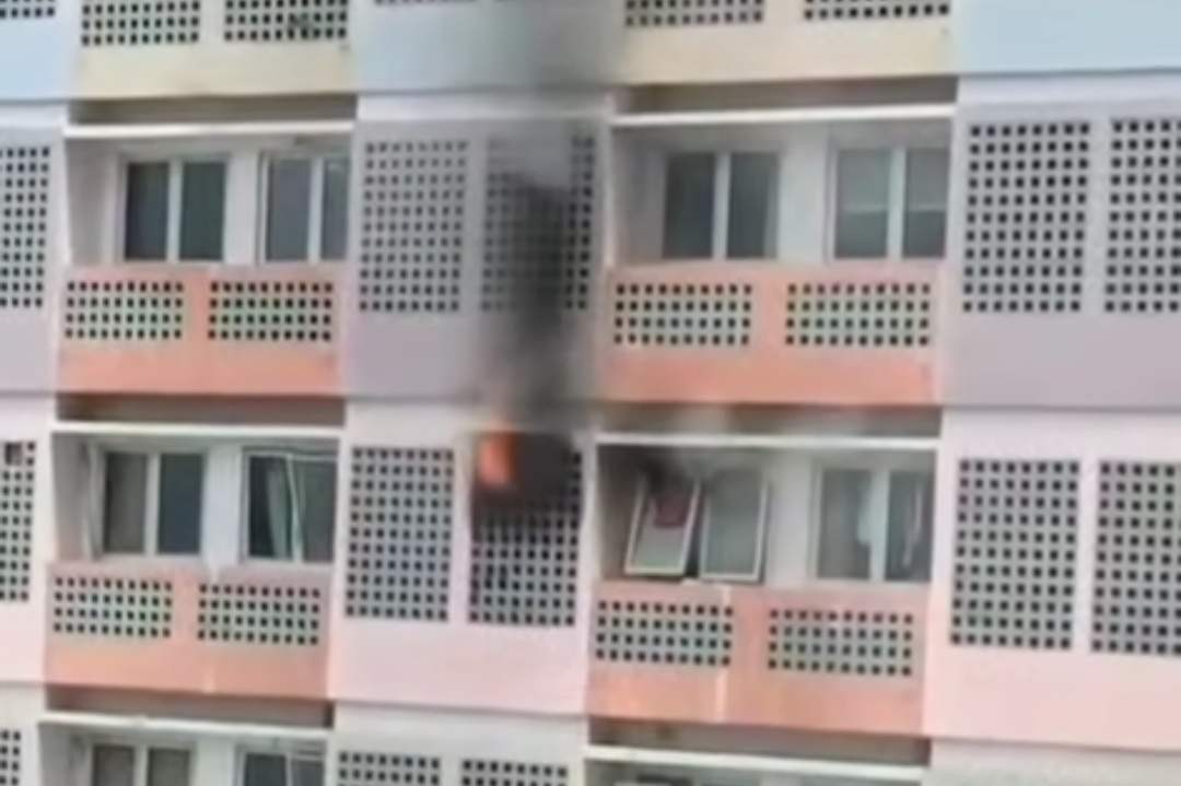 Dalam rekaman video yang beredar di media sosial, api tampak melahap jendela unit di lantai 5.
