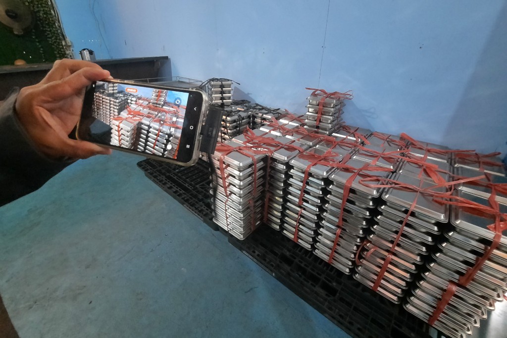 Tumpukan ompreng Makan Bergizi Gratis (MBG) di SPPG Mampang 1, Pancoran Mas, Kota Depok, Selasa (07/10/25). (Foto: adainfo.id)