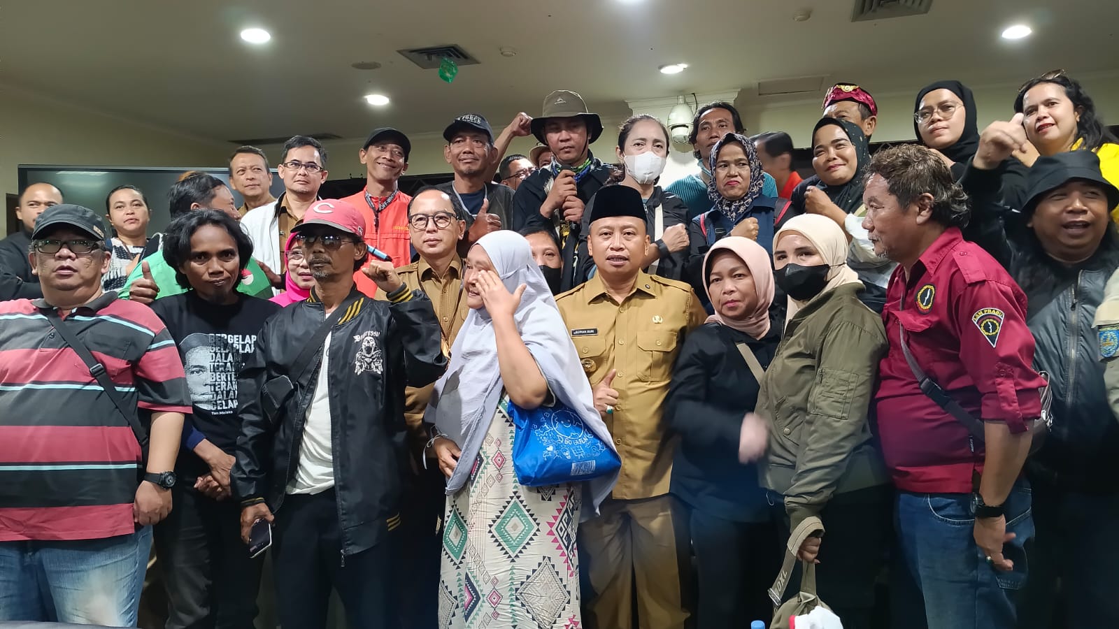 Wali Kota Depok Supian Suri bersama warga yang menyampaikan aspirasi terkait keberlanjutan UHC di Balai Kota Depok, Senin (09/02/26). (Foto: adainfo.id)